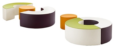 Dot Com - two waiting seats with simple forms, making the most of a salon’s waiting area. The compact, round DOT and the larger, curved COM can be organised in a variety of positions to create a personalised, diverse waiting area. Available in dual-tone variations.